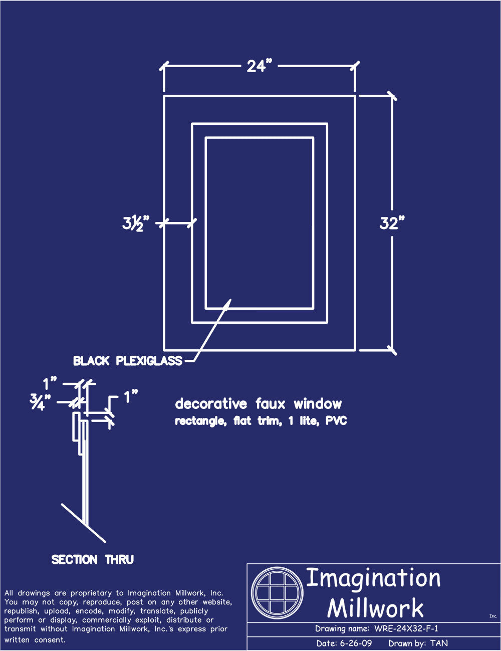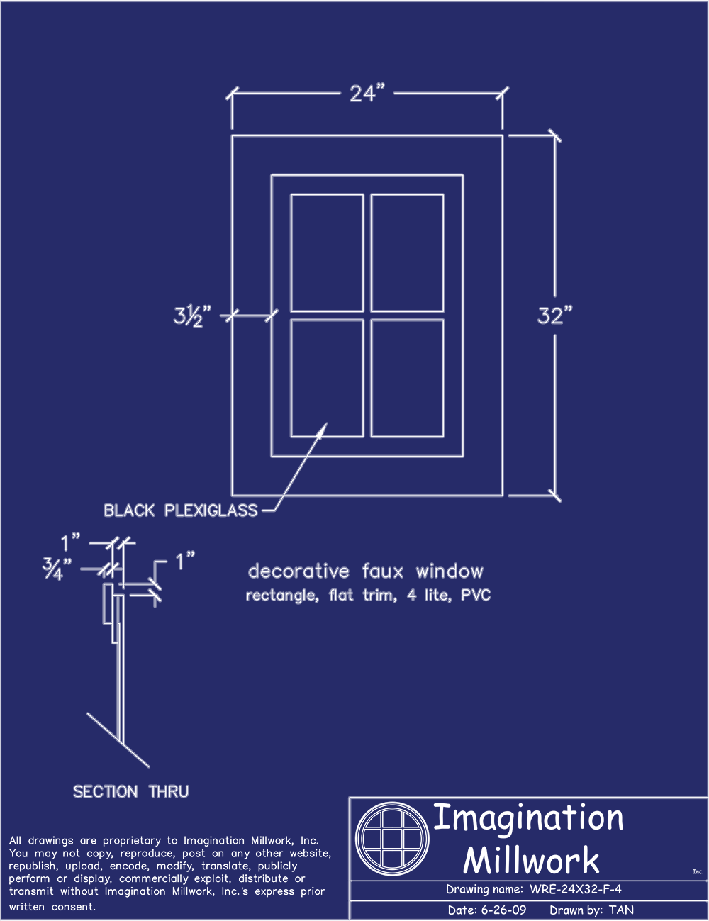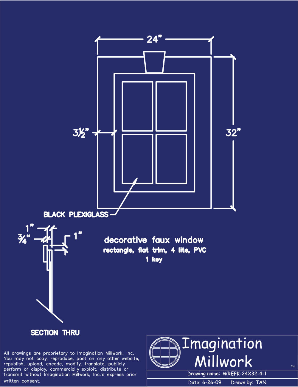 Imagination Millwork’s Decorative Faux Windows are skillfully crafted from sustainable PVC and resilient black plexiglass. The frame, trim (moulding), grilles, and keys are all constructed from durable white PVC. The faux "glass" is an opaque black plexiglass. Imagination Millwork’s Decorative Faux Windows can be installed on virtually any exterior surface and are designed so they will not pierce the building envelope*. Decorative Faux Windows require no assembly and are shipped ready-to-install. Imagination Millwork does not stock Decorative Faux Windows as they are built-to-order and manufactured at the time of purchase.