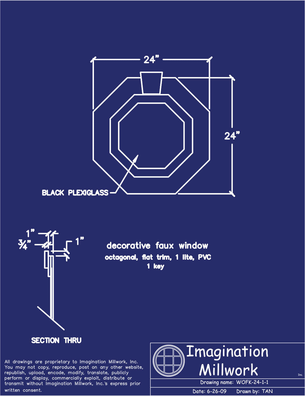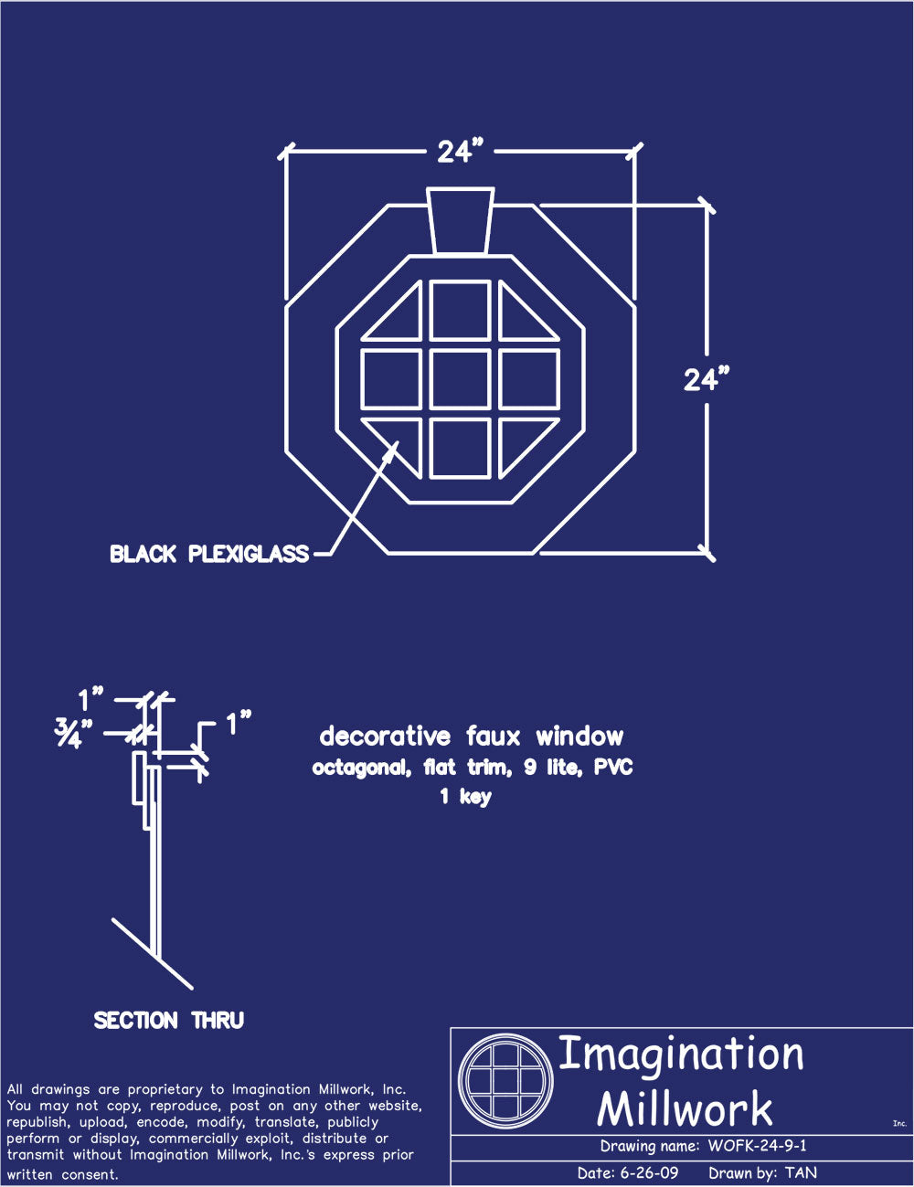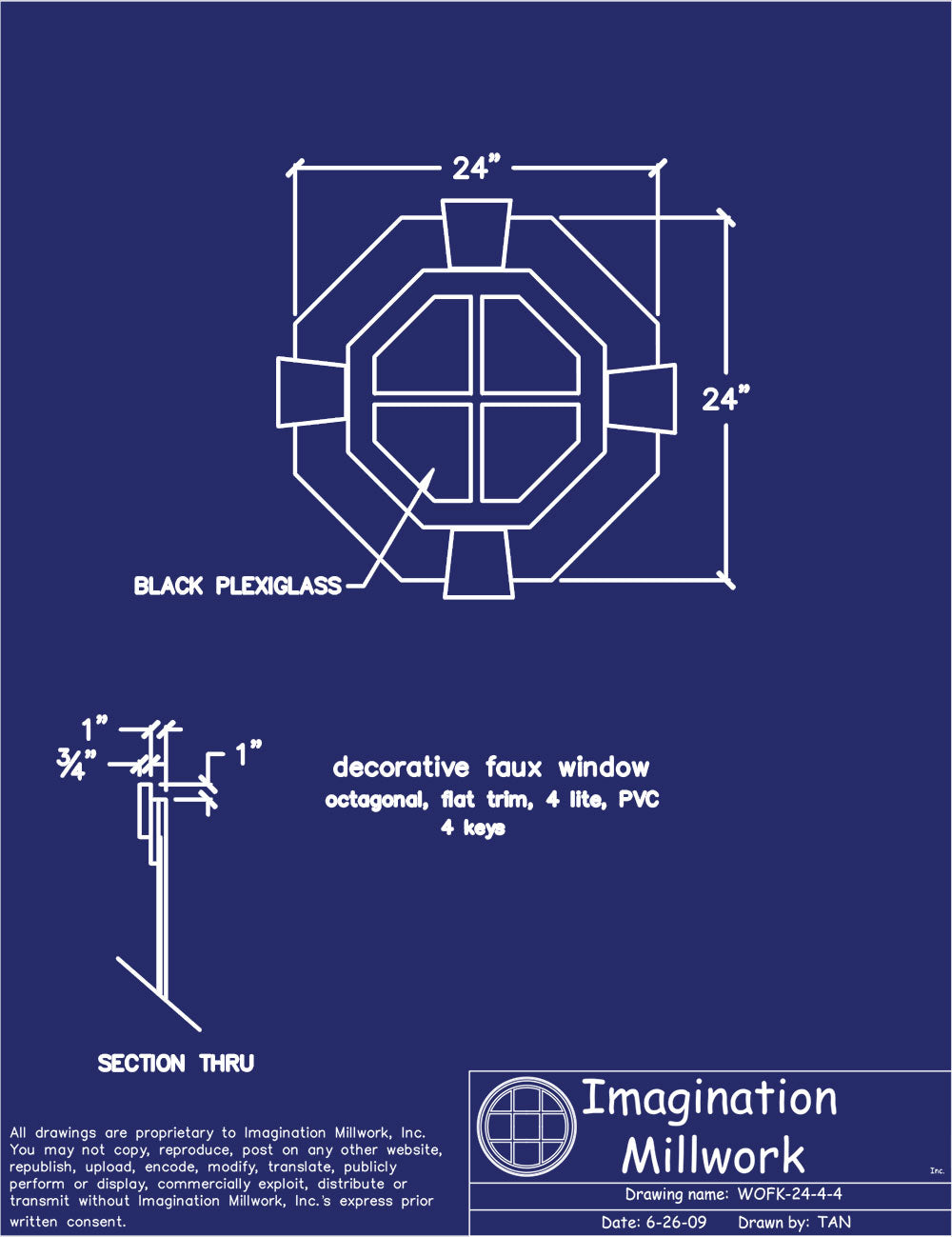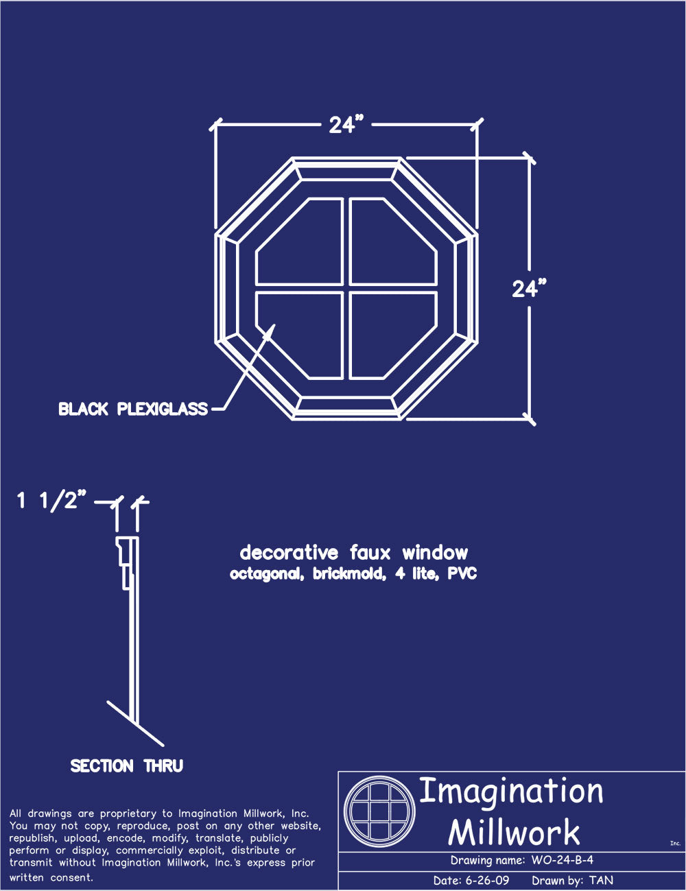 Imagination Millwork’s Decorative Faux Windows are skillfully crafted from sustainable PVC and resilient black plexiglass. The frame, trim (moulding), grilles, and keys are all constructed from durable white PVC. The faux "glass" is an opaque black plexiglass. Imagination Millwork’s Decorative Faux Windows can be installed on virtually any exterior surface and are designed so they will not pierce the building envelope*. Decorative Faux Windows require no assembly and are shipped ready-to-install. Imagination Millwork does not stock Decorative Faux Windows as they are built-to-order and manufactured at the time of purchase.