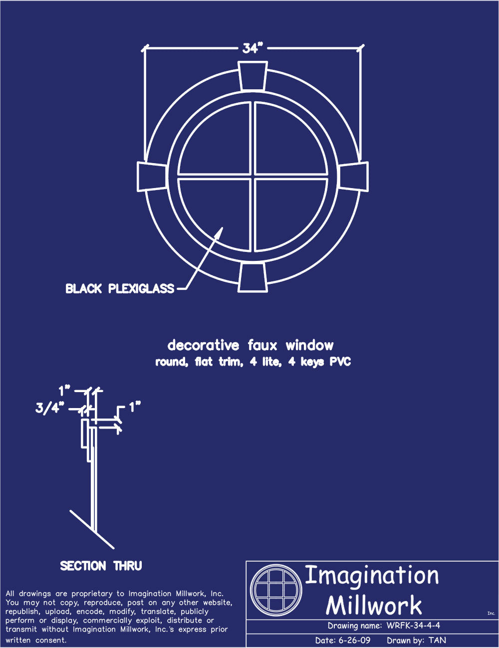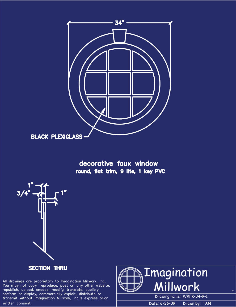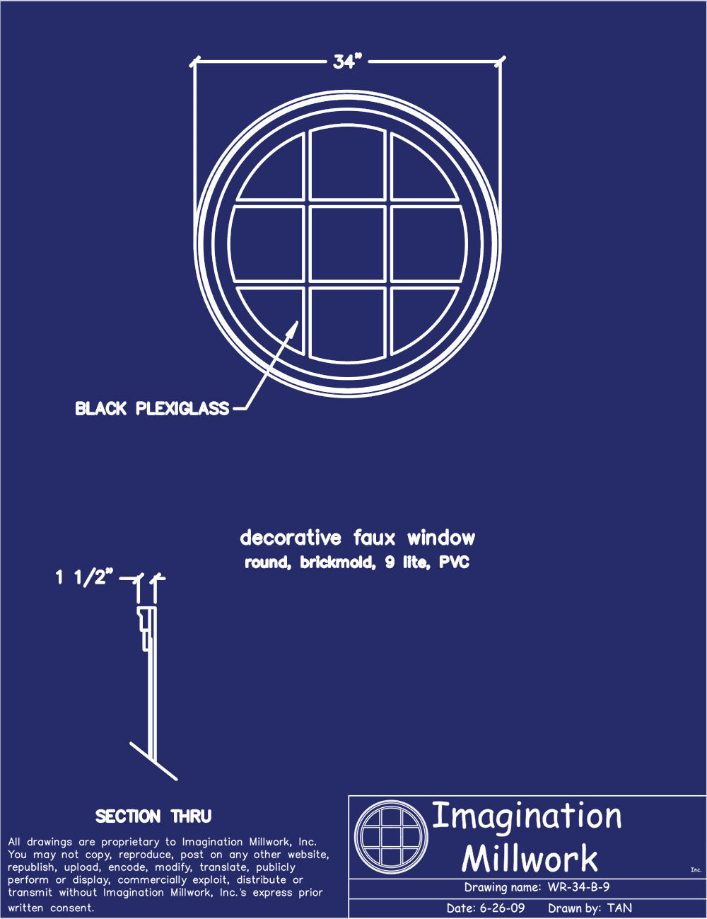 Imagination Millwork’s Decorative Faux Windows are skillfully crafted from sustainable PVC and resilient black plexiglass. The frame, trim (moulding), grilles, and keys are all constructed from durable white PVC. The faux "glass" is an opaque black plexiglass. Imagination Millwork’s Decorative Faux Windows can be installed on virtually any exterior surface and are designed so they will not pierce the building envelope*. Decorative Faux Windows require no assembly and are shipped ready-to-install. Imagination Millwork does not stock Decorative Faux Windows as they are built-to-order and manufactured at the time of purchase.