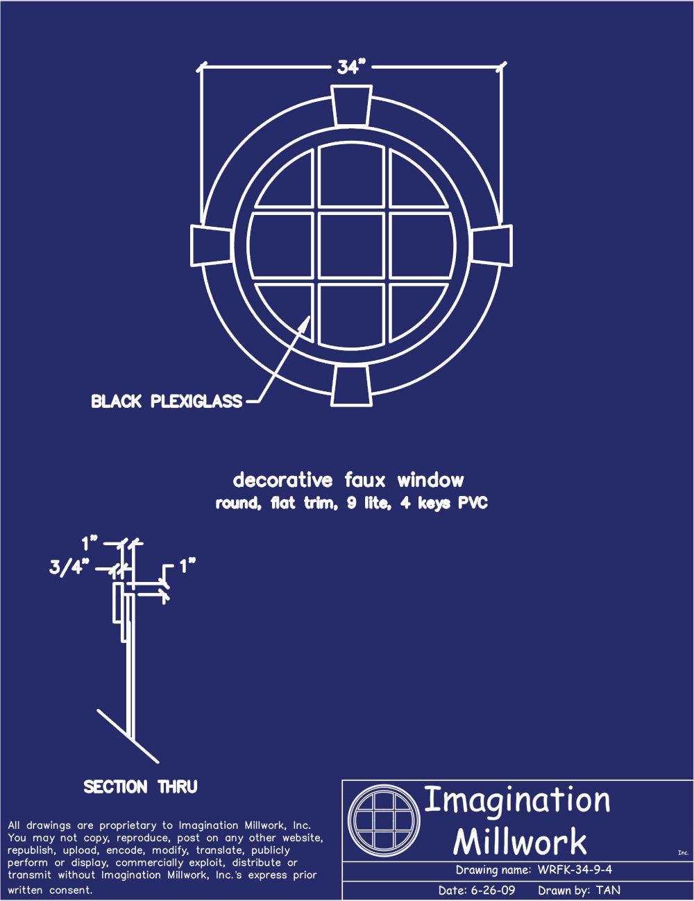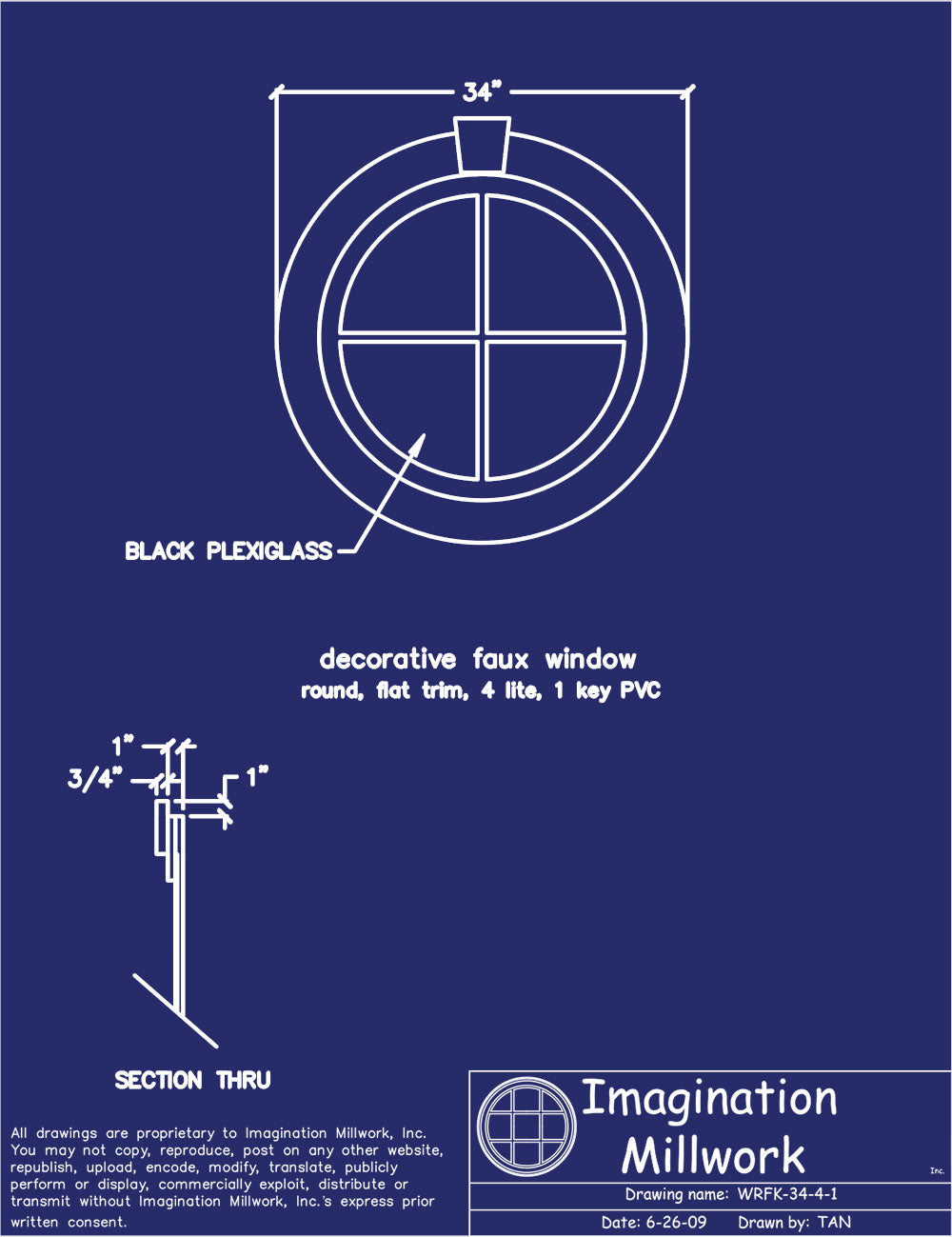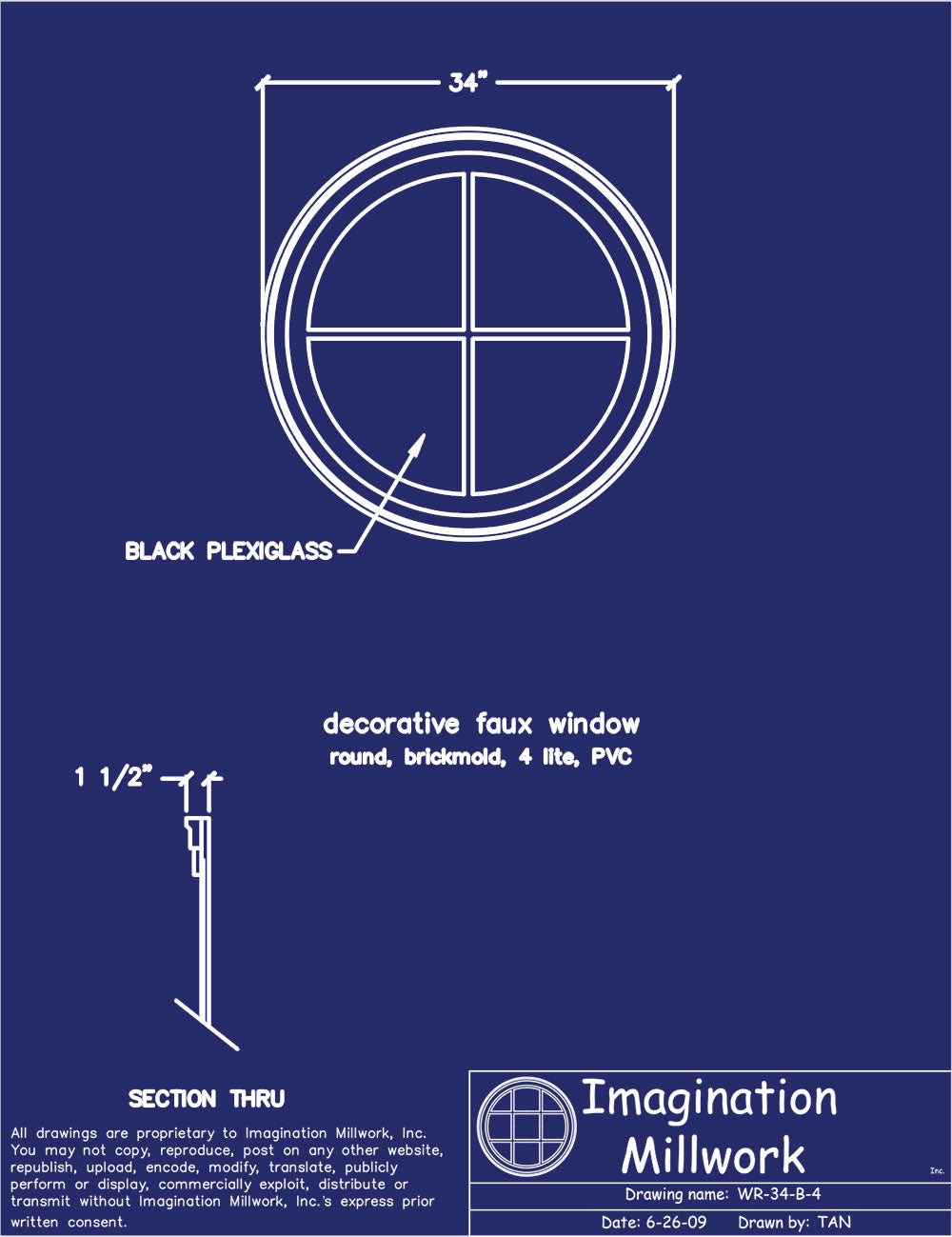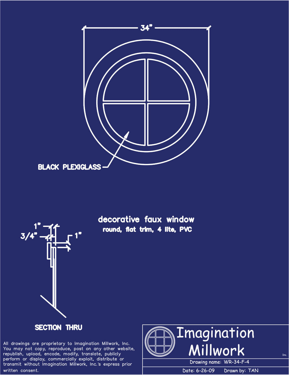 Imagination Millwork’s Decorative Faux Windows are skillfully crafted from sustainable PVC and resilient black plexiglass. The frame, trim (moulding), grilles, and keys are all constructed from durable white PVC. The faux "glass" is an opaque black plexiglass. Imagination Millwork’s Decorative Faux Windows can be installed on virtually any exterior surface and are designed so they will not pierce the building envelope*. Decorative Faux Windows require no assembly and are shipped ready-to-install. Imagination Millwork does not stock Decorative Faux Windows as they are built-to-order and manufactured at the time of purchase.